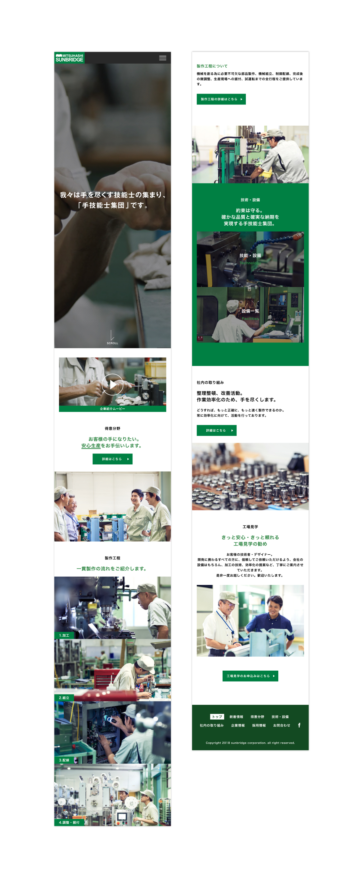 webサイトは、ご覧になったお客様に、まず一度工場へ来ていただくことを目指して制作しています。作業効率を上げるべく整理整頓が徹底された工場の様子や、繊細な仕事に取り組む社員のひたむきな姿を前面に押し出すことで、サンブリッジの魅力を伝えています。